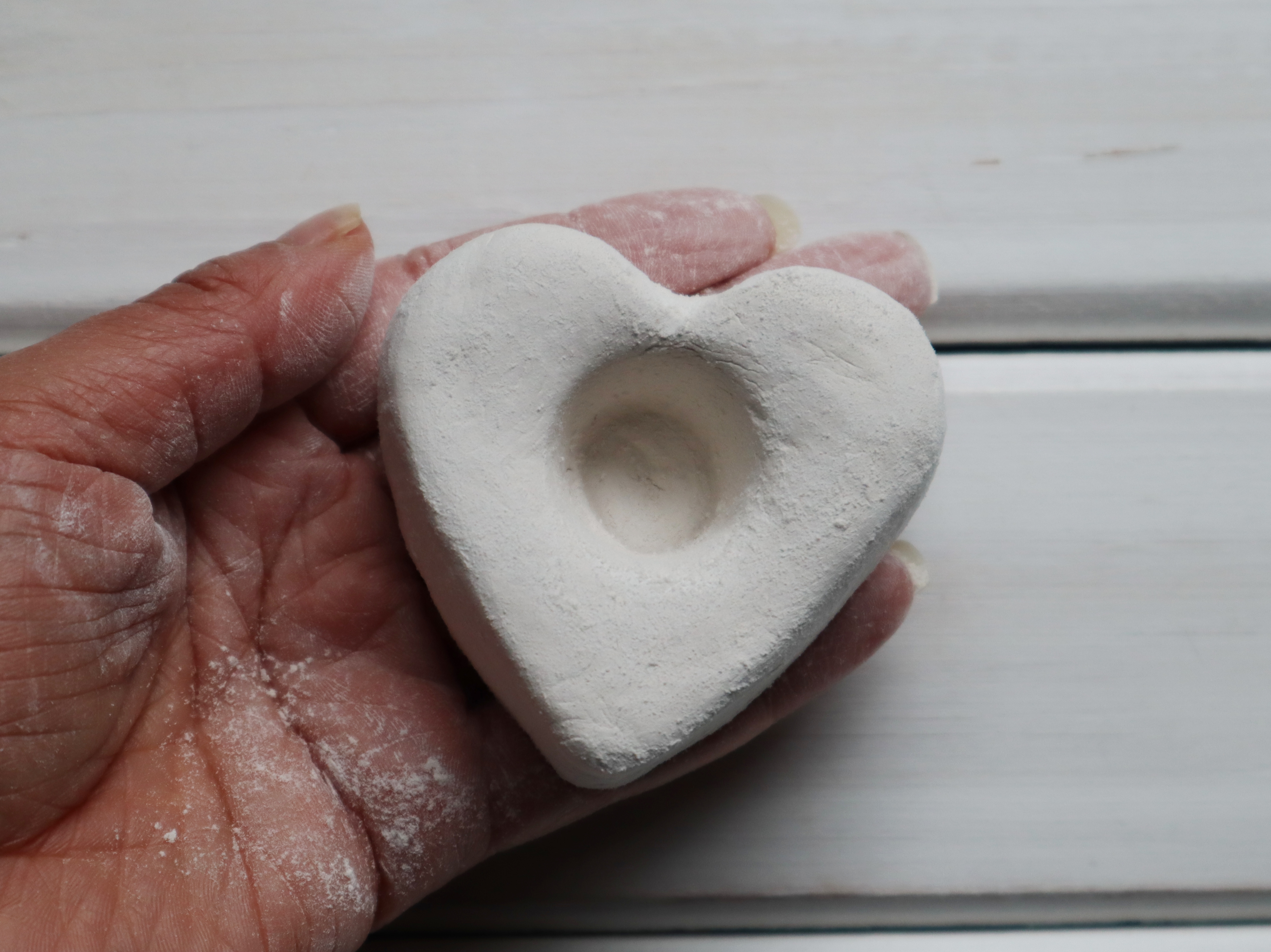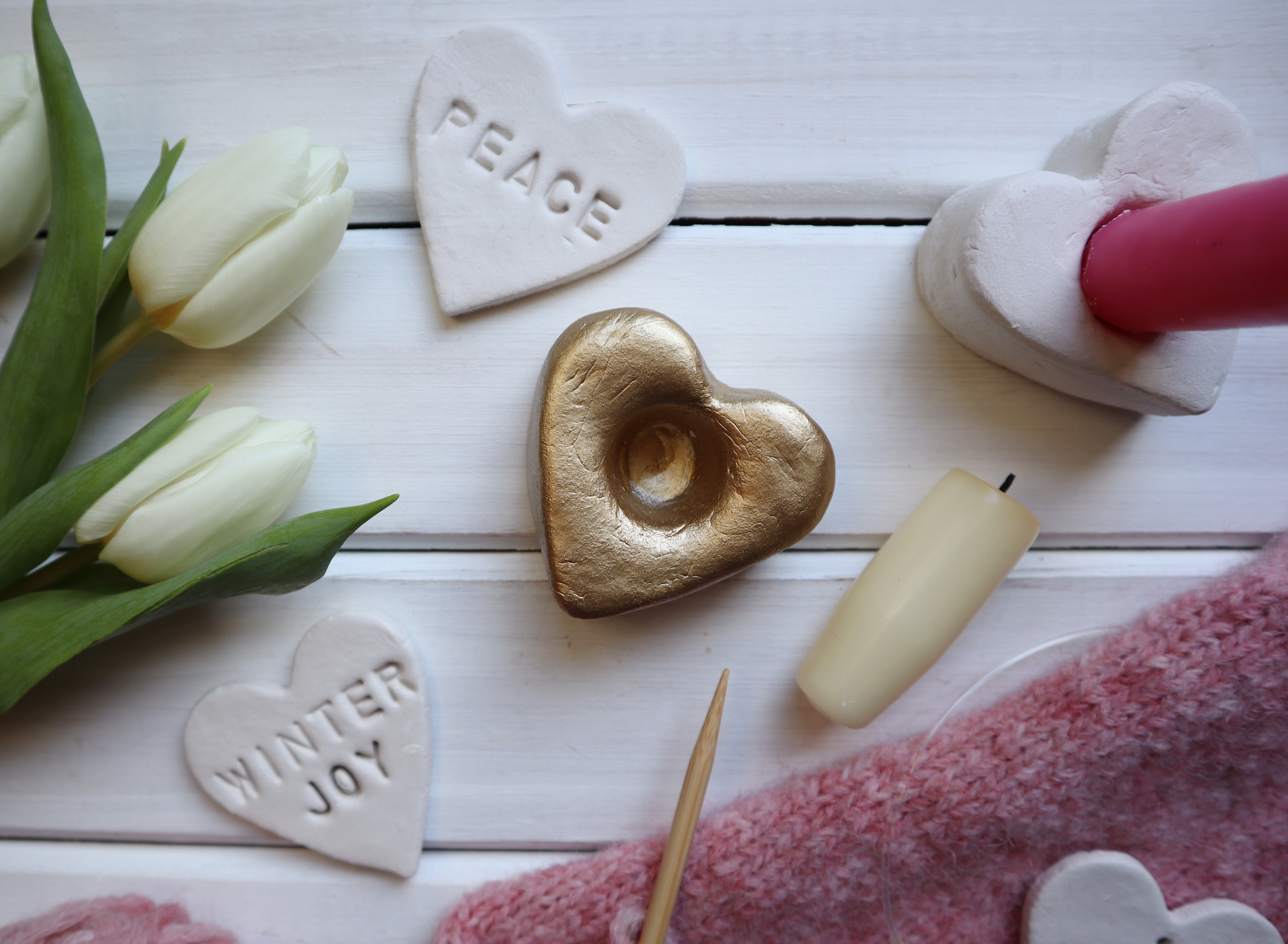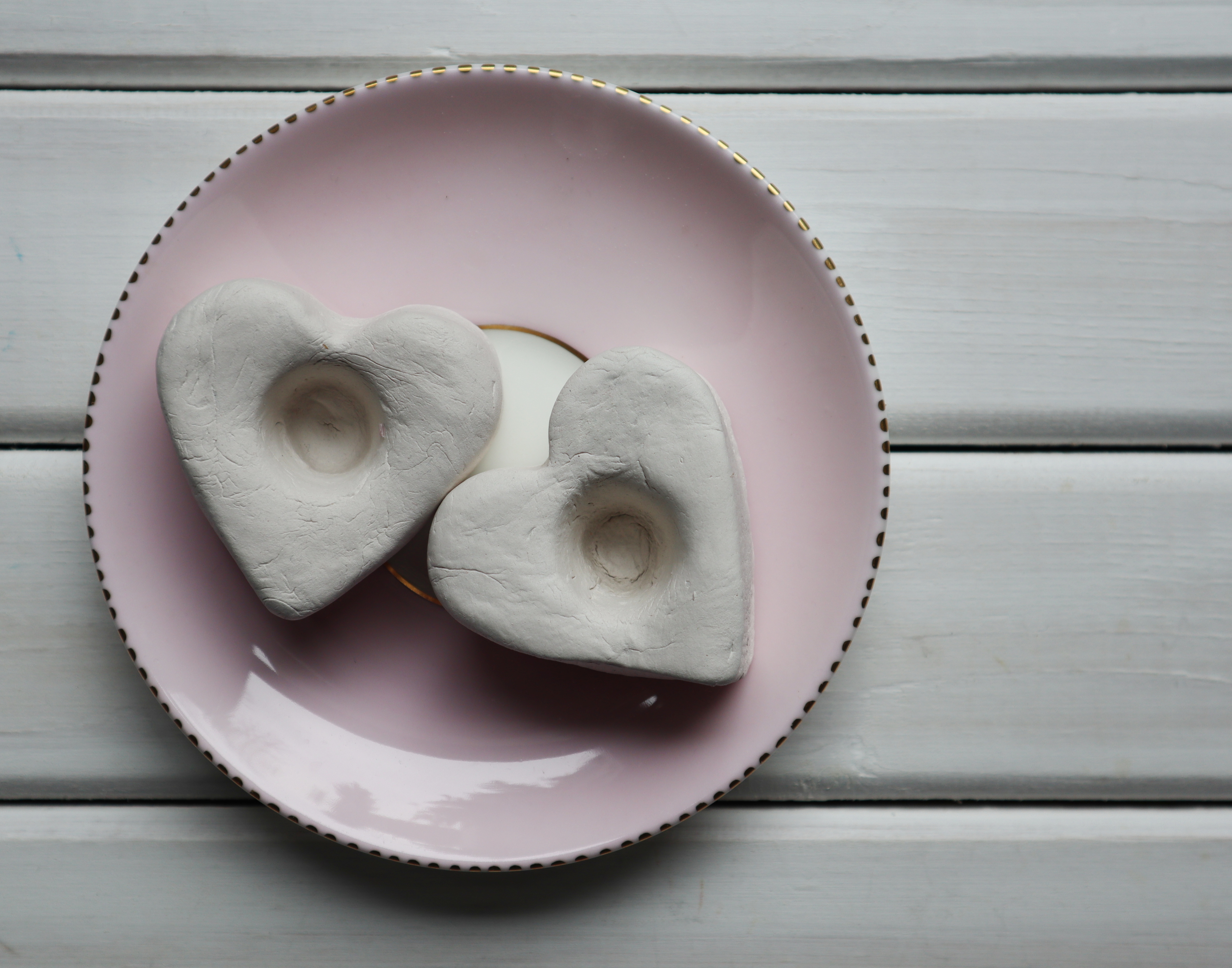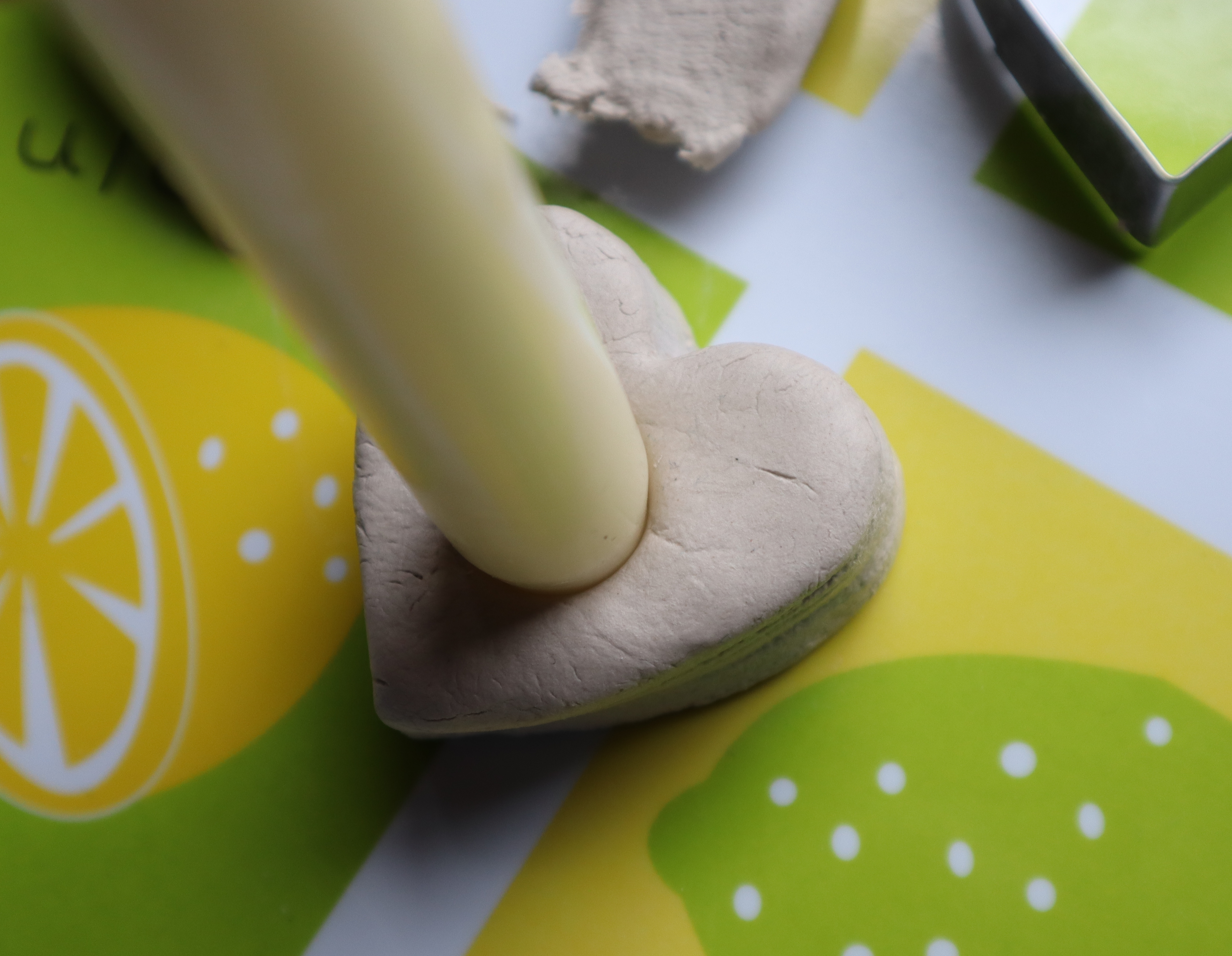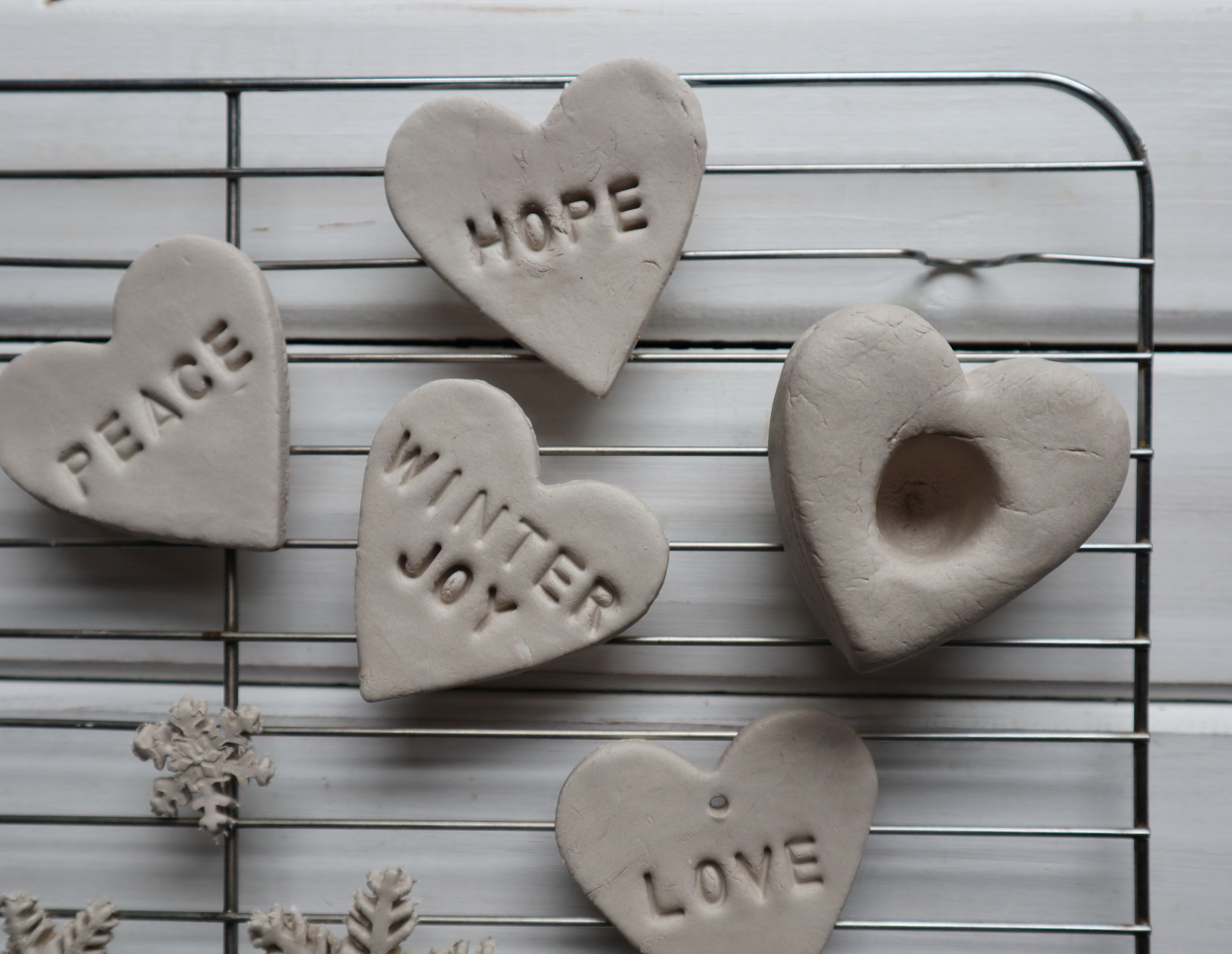 If you fancy, with the leftover clay, roll out to about 2mm thick, cut out more heart shapes and pop holes in them with a skewer to make tags. You could also press words into them (you can buy the letter stamp set here) and use them as props in your pics. These will take 24 to 48 hours to dry.